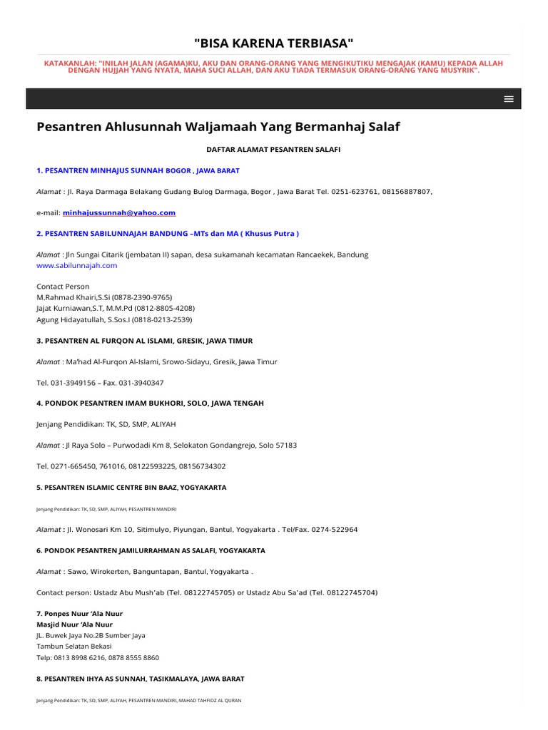 Ustadz siapa sajakah yang bermanhaj salaf? Sekolah dasar islam plus imam nawawi merupakan sekolah sunnah bermanhaj salaf yang mengajarkan kepada siswa tiga pondasi pendidikan yaitu menumbuhkan karakter seorang muslim sebagaimana yang dicontohkan rosulullah, membangun kompetensi pengetahuan dan membiasakan berpikir kritis. Profil pondok pesantren anshorus sunnah adalah lembaga pendidikan & dakwah islam yang berdasarkan al qur'an dan as sunnah menurut pemahaman salafush shalih visi: Kita semua paham bahwa remaja saat ini menghadapi banyak tantangan mulai dari mudahnya akses internet dan media sosial serta maraknya pornografi dan pengaruh lgbt. Sekolah salaf kenapa biaya nya mahal mahal ya, sampe pusing cari2 sekolah buat anak yg mau lulus mi, rata2 di daerah bogor jakarta bekas uang pengembang 25jt, bulanan 2jt.